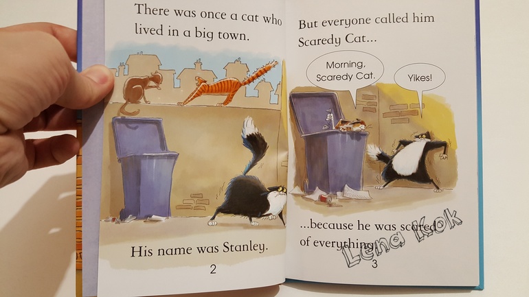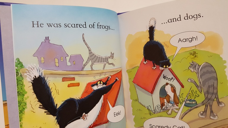 "The scaredy cat" - эту книгу мы пока еще не читали, т.к. текст требует большего словарного запаса. Но думаю, она нам тоже понравится)