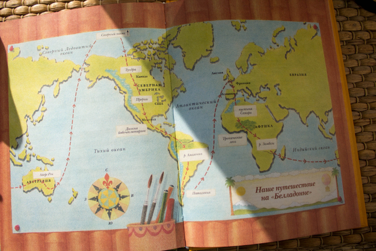 Один только факт, что трое детей и их дедушка отправляются в путешествие на летающем доме - дирижабле по имени "Белладонна", уже сразил нас с дочкой наповал. Электрический ток там вырабатывают специальные угри, шар сплетен из паутины, которую плетут пауки, живущие на дирижабле, а на одном из этажей летающего дома располагается сад с грядками и фруктовыми деревьями.