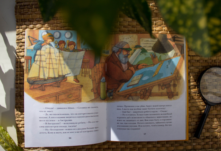 Но дальше больше, в каждой главе на поиски пропавшего дяди команда отправляется в новое путешествие, в новую местность с ее обитателями - прерии Северной Америки, снега Антарктиды, пустыни Африки, берега Австралии, - где ребят ждут новые приключения и подстерегают новые опасности. Подробности раскрывать не буду, но книга для старших дошколят и младших школьников идеальная и читается на одном дыхании.