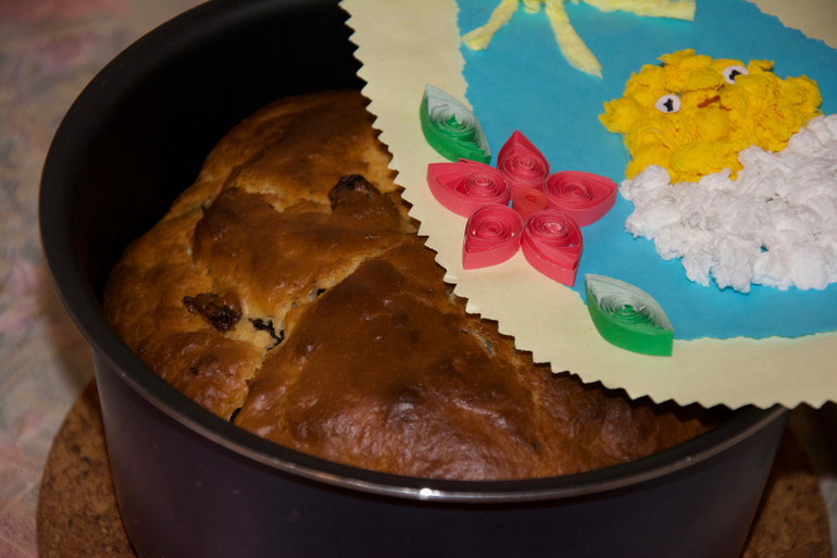 Яйца красить за уши было не оторвать! Но грязную работу перепоручили маме! Рося положил сахарное яичко на кулич и с чувством выполненного долга отбыл смотреть мультики, что несомнено, гораздо интереснее и предусмотрительнее!
