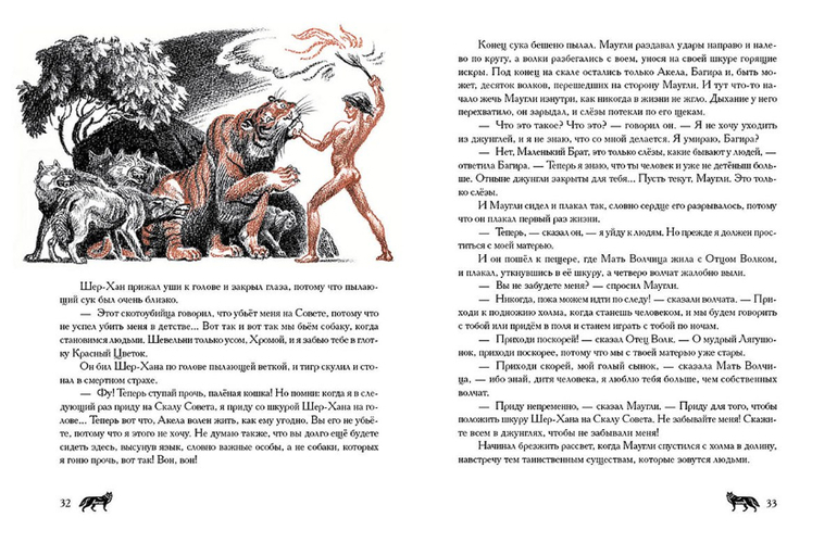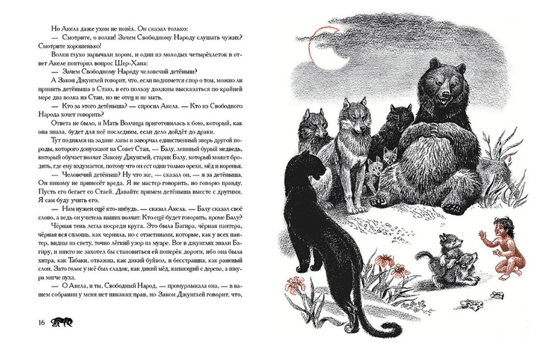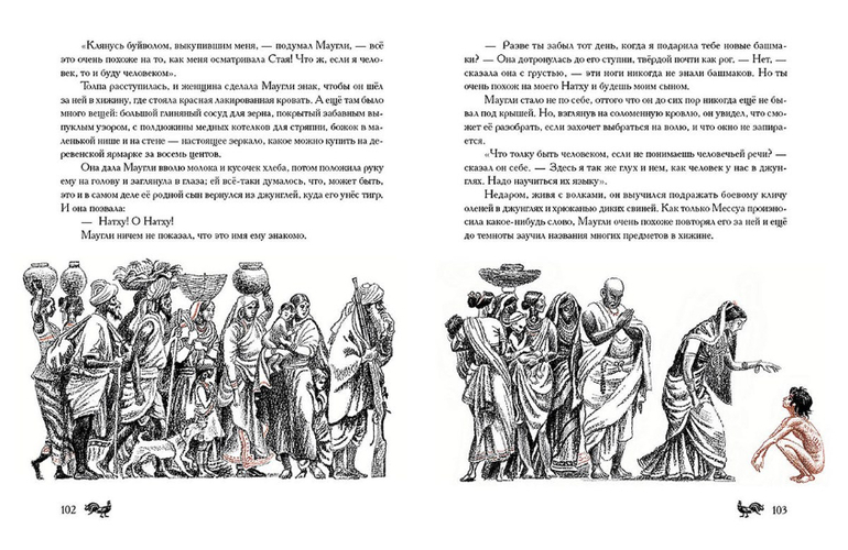 История мальчика, выросшего в волчьей стае и воспитанного мудрыми зверями, - это рассказ о дружбе и преданности, о мудрости, благородстве и справедливости. Недаром герои этой книги - медведь Балу, пантера Багира, волк Акела, удав Каа и, конечно же, сам Лягушонок Маугли - стали любимыми у читателей разных стран и возрастов.