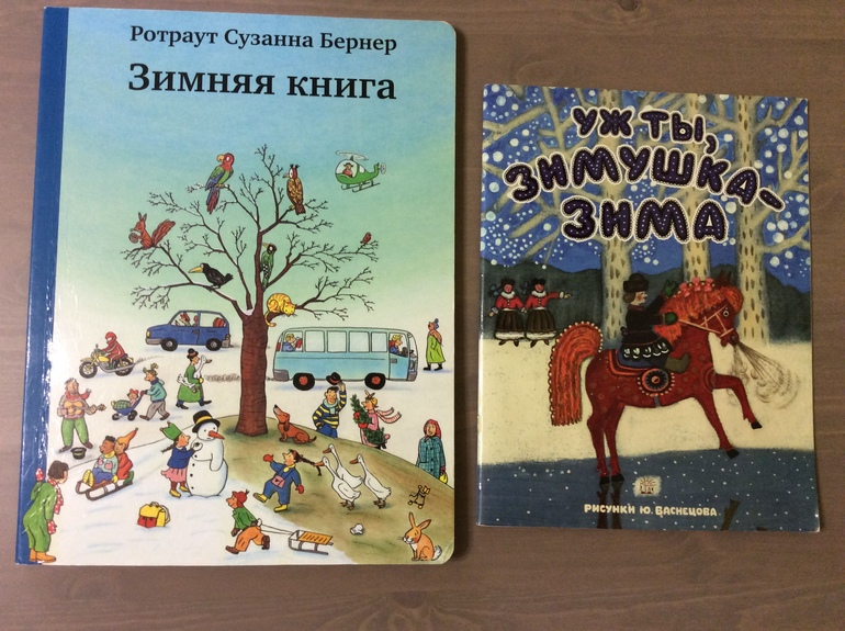 Достали из закромов «старые» книжки про зиму: потешки и виммельбух Бернер. «Зимнюю книгу» сын снова мог рассматривать подолгу, при этом его новый опыт - зимние забавы на прогулках, встреча Нового года, украшение елки и т.д. - вывели ее на какой-то другой, более осознанный уровень по сравнению с тем, как мы ее рассматривали до года.