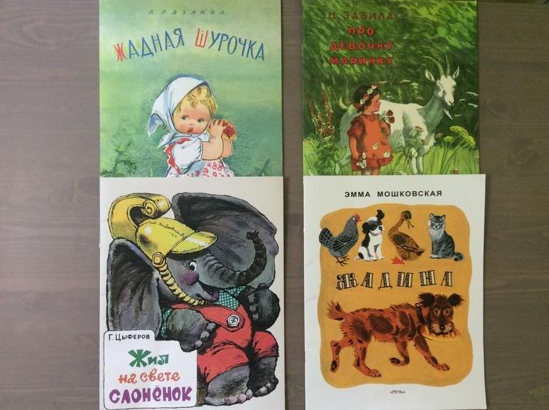 Книги, которые читались реже всего. На волне любви сына к стихотворению Э.Мошковской про жадину, были куплены ещё две книги с ее стихотворениями. Но совсем «не зашли». Во всяком случае, на тот момент времени. До сих пор периодически достаю их для чтения, но сын сам никогда их не приносит.