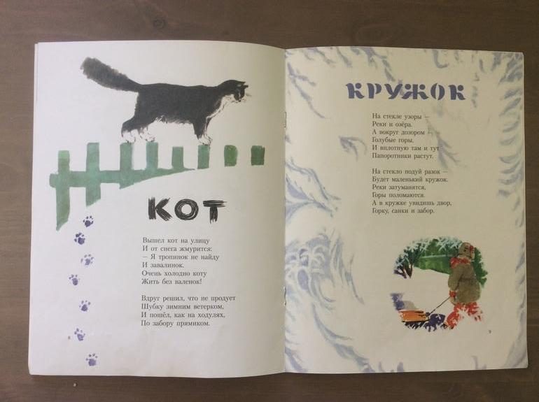 При чтении «Про башмачки» сын всегда радовался, когда в конце башмачки находили себе хозяина. Вспомнила, что ещё он тогда начал показывать, как кошка выпускает свои когти, при чтении разворота с кошкой.
