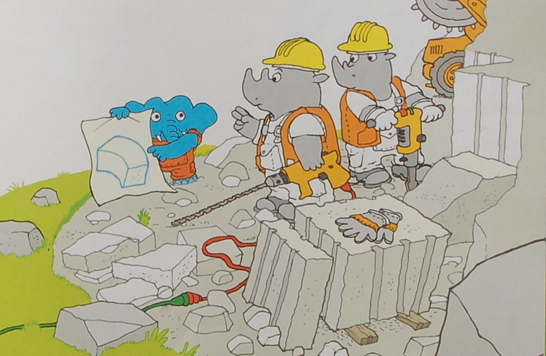 Могучий каменотёс - повелитель камней! Эдвард и Ноэль помогли Мимбо-Джимбо сдлать корпус маяка ("Мимбо-Джимбо строит маяк". Якоб Мартин Стрид)