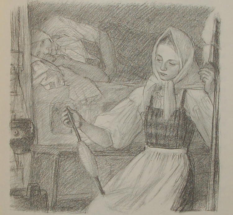 Внучка Алексея Пахомова, перенявшая от бабки умение ткать и прясть ("Лев Толстой. Рассказы для детей")