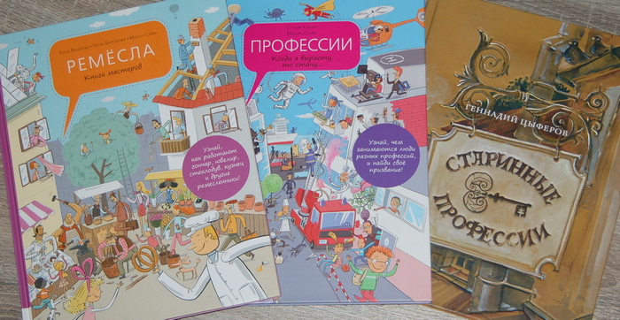 Флешмоб!Недавно как раз начались у нас дома задаваться вопросы на тему профессий, работы, зарабатывания денег. И в арсенале обнаружились вот такие три книги. Но раз уж в названии флешмоба есть слово "ремесла", подборку старалась делать по ним. Приглашаю прогуляться в те года, когда не было фабрик и заводов, а почти все вещи изготовлялись мастерами-ремесленниками.