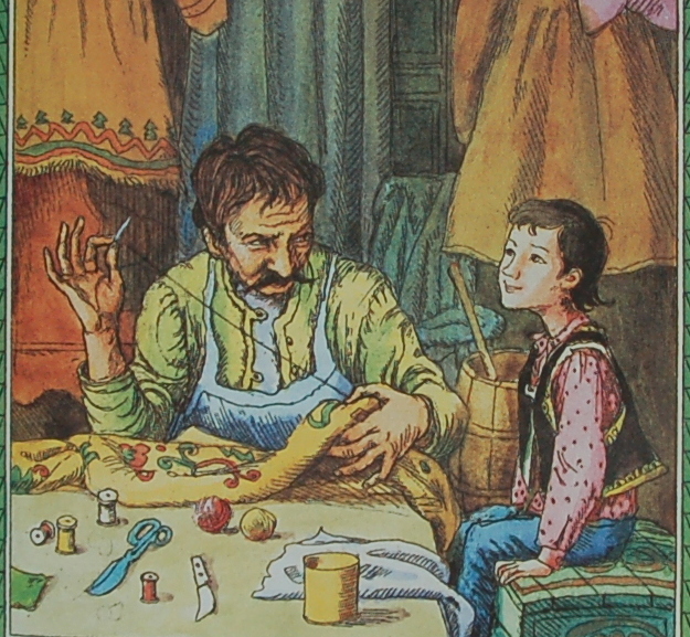 Скорняк Бориса Диодорова шьет чудесную шубейку своему сыну ("Волшебная шубейка")
