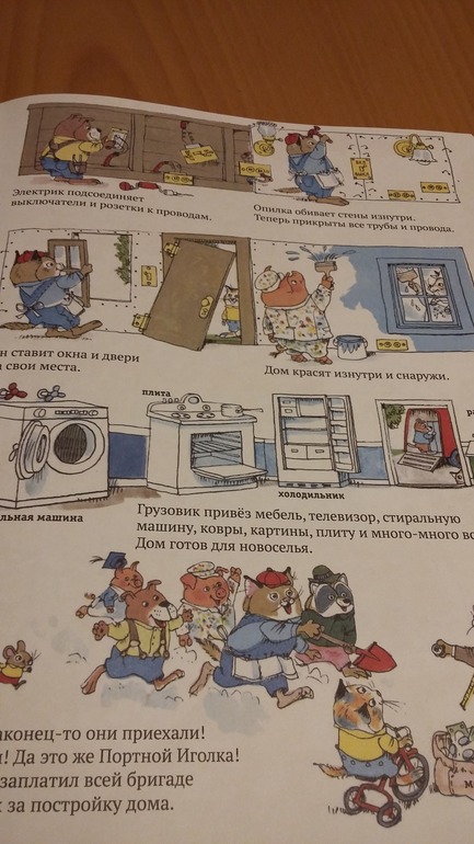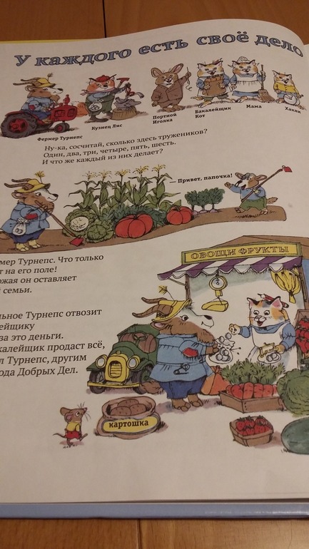 У каждого персонажа из данной книги есть свое дело. Ребенок знакомится не только с профессией, но как бы по картинкам можно увидеть всю ее поднаготную.