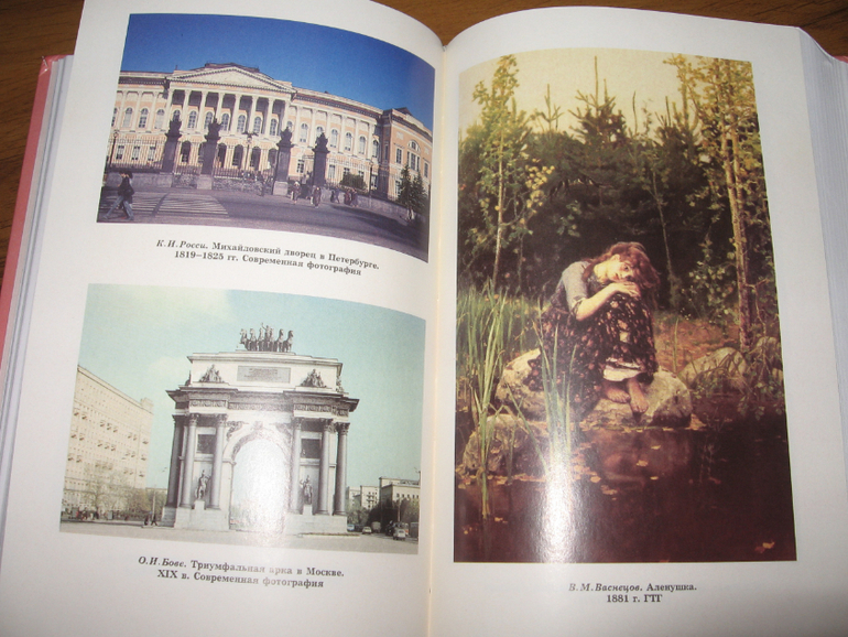 Не смотря на то, что книга напечатана на тонкой бумаге, томик получился довольно увесистым и пухленьким, его приятно взять в руки. Текст не особо крупный, но неудобств при чтении не вызывает, к тому же такую литературу редко кто читает " в запой". Внутри много черно-белых иллюстраций, но есть и две цветные вклейки по 10-12 листов (приблизительно). Вклейки уже выполнены на тонкой меловке. Цветные иллюстрации мелковаты, конечно же, для того, чтобы разглядывать детально картины или здания, но просто для того, чтобы иметь представление о них вполне подойдет.