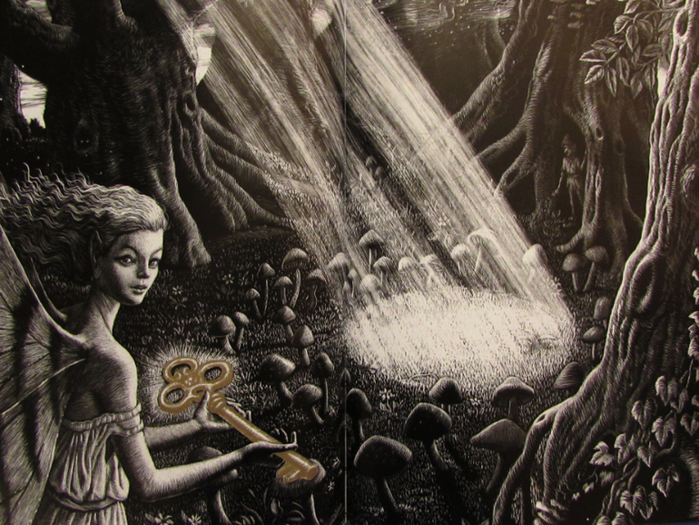 Но тут я не смогла устоять перед красивейшими черно-белыми рисунками Руф Сандерсон. Они выполнены в технике рисования скретчборд.