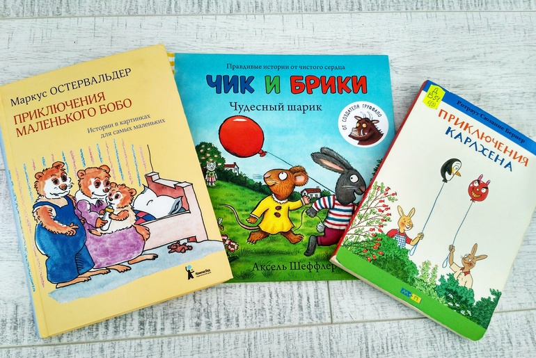 У нас есть ещё Карлхен упрямится. Но это сборник коротеньких рассказов на возраст чуть старше. Там и странички бумажные, а не картонные и рисунков меньше. Эти рассказы тоже нравятся старшему сыну и они более поучительны.