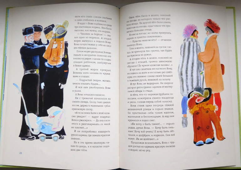 А вот в книге, о которой я пишу, с оформлением всё в полном порядке - замечательные рисунки Лосина на каждом развороте; причем, по рисункам невозможно понять, как закончится сказка. Я читала книгу с сыновьями, когда им было 5 и 7 лет, и интрига сохранялась до самого конца.