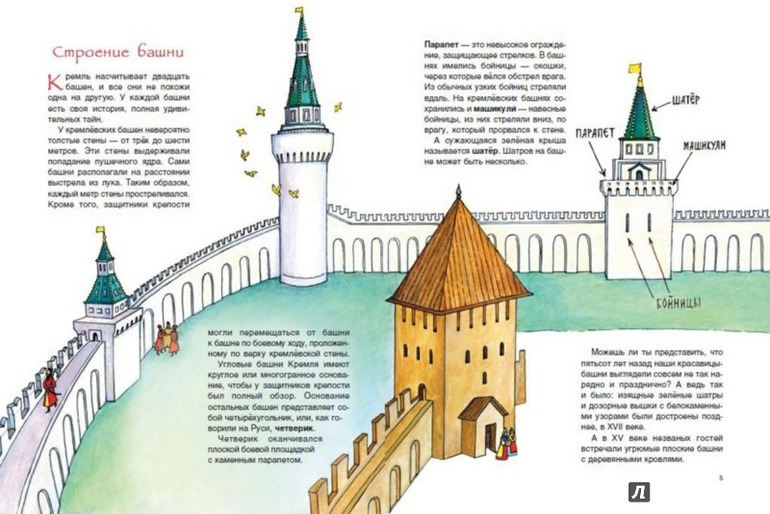 Московский Кремль - это не только резиденция российского президента, но и самая настоящая средневековая крепость. Давным-давно наши предки поселились на берегу Москвы-реки. Свой крошечный городок они огородили частоколом. Городок рос, у него появились белокаменные башни и стены. Проходили столетия. Каменные стены заменили знакомыми нам кирпичными, а башни стали гораздо выше и красивее. И теперь мы не представляем Москвы без Кремля, а Нового года - без курантов. Днём и ночью над Москвой горят пять рубиновых звёзд на кремлёвских башнях. А всего башен - двадцать, и у каждой есть своя полная тайн и загадок история.