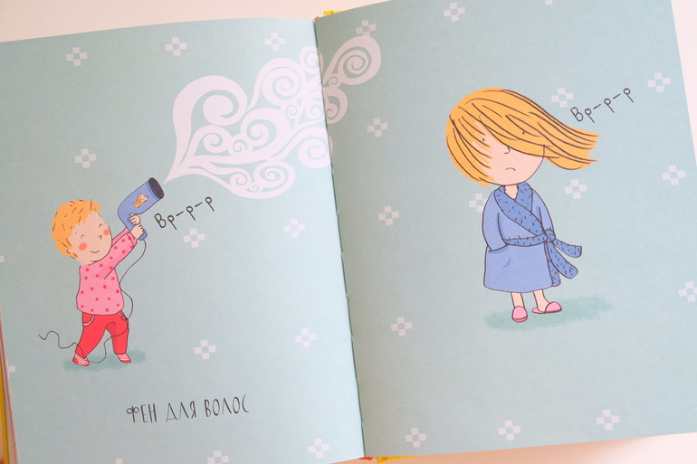 Книжка поможет родителям не только обучить своё чадо новым словам, но и развивать его воображение (и своё тоже 😁). Ведь по простым и понятным иллюстрациям так удобно сочинять рассказы, в которых главным героем может стать ваш малыш.