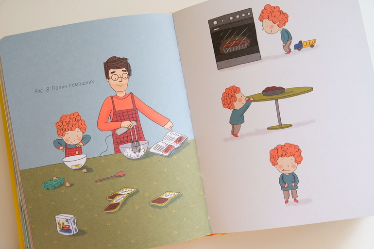 Понравилось мне то, что в книге очень многие предметы нарисованы в нескольких вариантах. Это помогает ребёнку понять, что подушка бывает разная и по размеру, и по расцветке; что йогурты бывают разные; расчёски, шапки, чашки, машины, крупы, цветы, насекомые и много-много чего ещё тоже могут различаться по внешнему виду, размеру, вкусу. Это замечательно помогает расширить кругозор ребёнка.