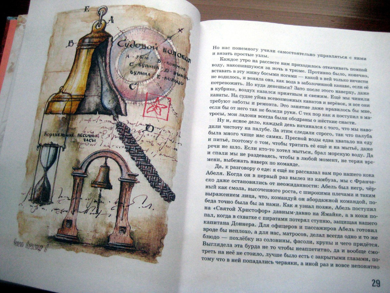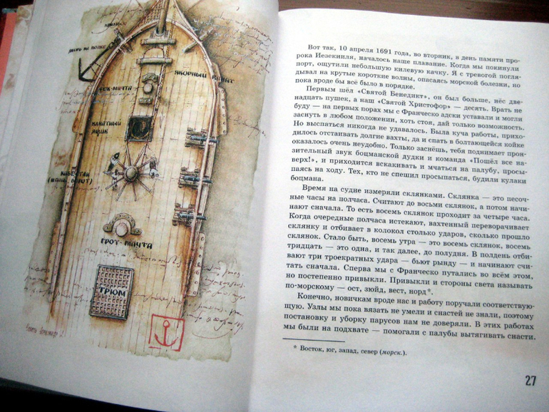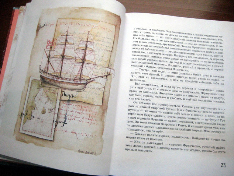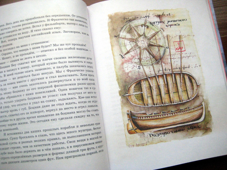 Должна заметить, что вот уже во второй книге этой серии мне очень нравятся иллюстрации - настоящие морские картины с изящными кораблями и прозрачной морской волной, сквозь которую просвечивают лучи солнца...