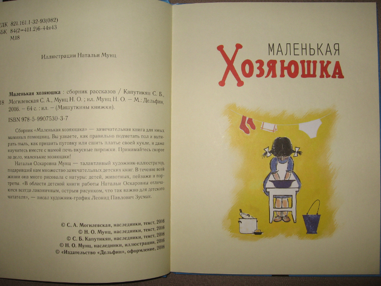 У издательства "Дельфин" книги напечатаны очень качественно и основательно. Обложки супертвердые, бумага суперплотная. Бывают правда опечатки, но в этой книге, насколько помню, их нет. Книга, безусловно, больше подходит для девочек, но это вовсе не означает, что мальчикам она будет не интересна совершенно. Тут уж все зависит от каждого конкретного ребенка. Егор года в 4-5 стал бы слушать с удовольствием, а сейчас уже не интересна ему такая книга, перерос. Алисе же наоборот все интересно и послушать, и попробовать (и пол помыть, и кровать застелить, и платье сшить, и все-все-все остальное), а позже книга и для самостоятельного чтения пригодится. Пока убрали книгу отдыхать, сейчас читаем с Алисой дельфиновский "Веселый трамвай".