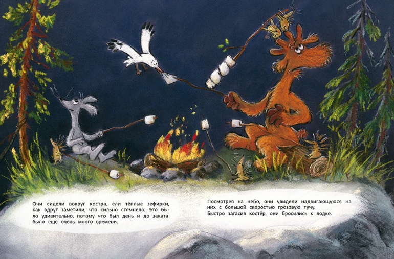 Летняя рыбалка с друзьями - что может быть заманчивее? Так думали Лосик и Кролик, отправляясь в плавание по озеру вместе с ежатами. Лето, солнце, мерное покачивание лодки, а потом ещё и тёплые зефирки у костра, - день обещал быть прекрасным. Но друзья не знали, что впереди их ждёт серьёзное испытание...