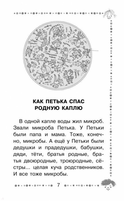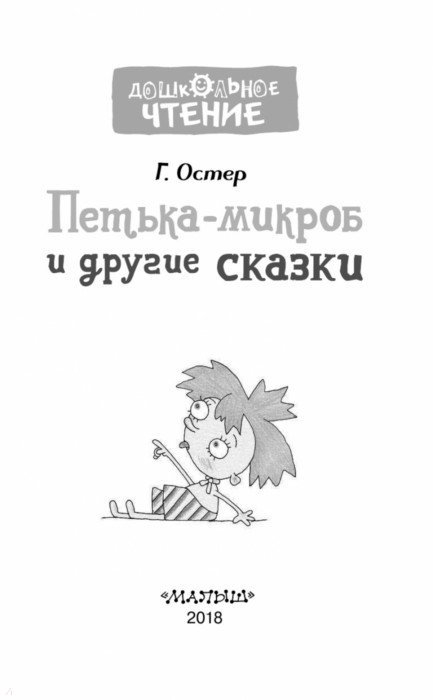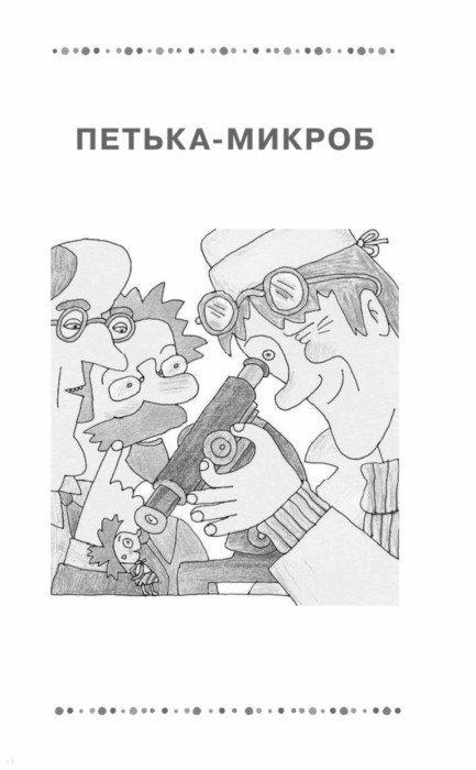 Петька - это микроб. Не все микробы вредные, а Петька был по-настоящему полезный. Делал кефир. Искал пропавшую частицу. Помогал младшеклассникам и академикам. В общем, дружил с человеком. В книге «Петька-микроб и другие сказки» все герои такие: хотят быть взрослыми и полезными. В издание вошли несколько новых сказок Г. Остера: «Пузыри и лужи», «Домик-теремок», «Большая-пребольшая».