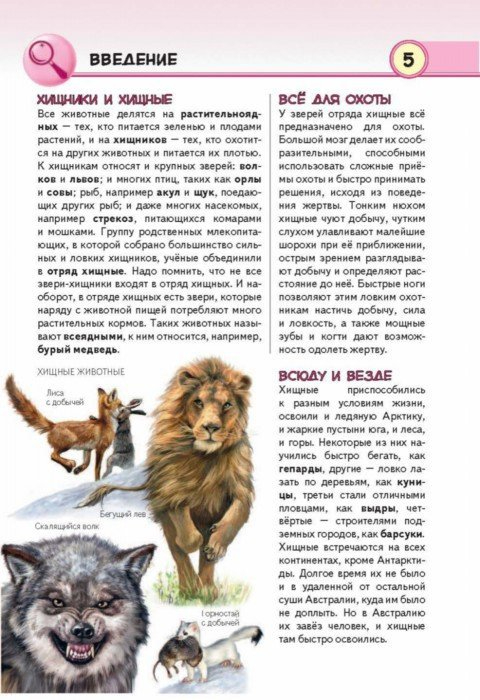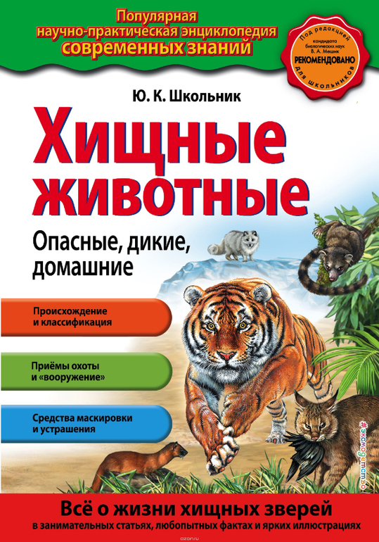 Книга "Хищные животные. Опасные, дикие, домашние" рассказывает обо всех видах животных отряда хищные. Вы узнаете, как выглядел общий предок медведя, лисы, выдры, енота, ласки, кошки и собаки. Вы убедитесь, что хищники живут на земле и под землёй, на деревьях и в воде. Книга поведает о том, каким оружием природа наделила охотников, какими хитрыми приёмами они пользуются, чтоб одолеть ловкую и быструю жертву.