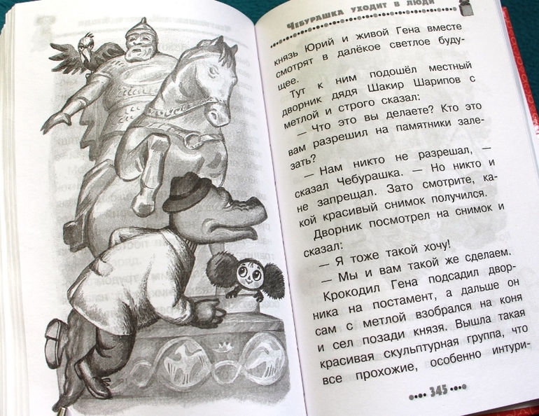 Вообще в книге мне Чебурашка больше нравится. В мультфильме он какой-то аморфный, тупенький. А в книге очень деятельный парень получился, особенно в продолжение историй. И с Шапокляк герои у книге не церемонятся, она хорошо получает за свои проказы.