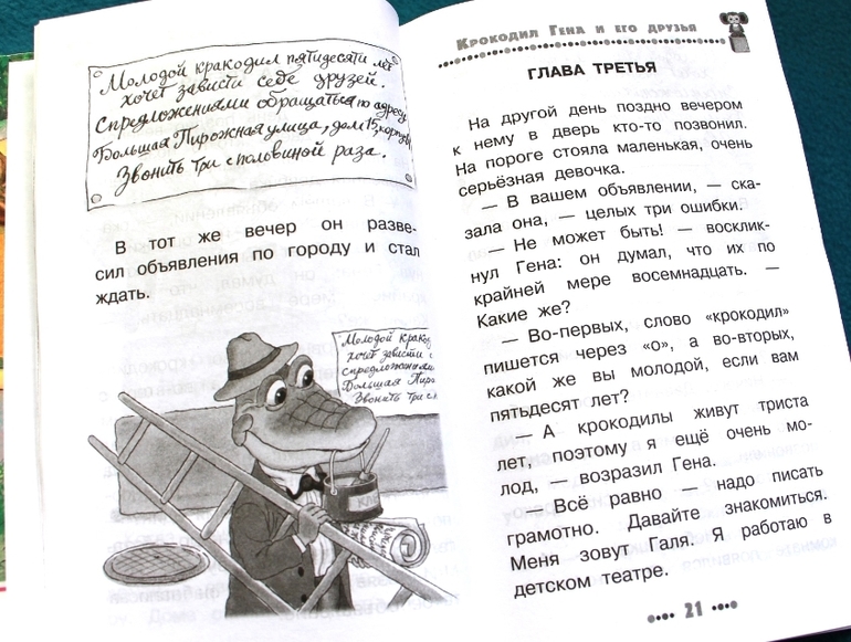 В книге аж 6 историй. Мультики сняты по первым двум. Надо сказать, что в отличии от Простоквашино, в мультиках около 80% от самой истории в книге. От истории, не от текста. А вот в тексте кроется самое смешное. Успенский украшал каждую сцену огромным количеством деталей и эти детали богато наполнены юмором. Юмор разный: немного взрослого, много детского, есть даже шутки, которые поймет и трехлетка. Вот как раз юмора, на мой взгляд, в мультфильмы мало вошло.