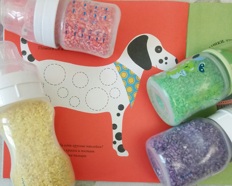 Хотя нет, хотим ярких красок, и украсим пятна разноцветным рисом)