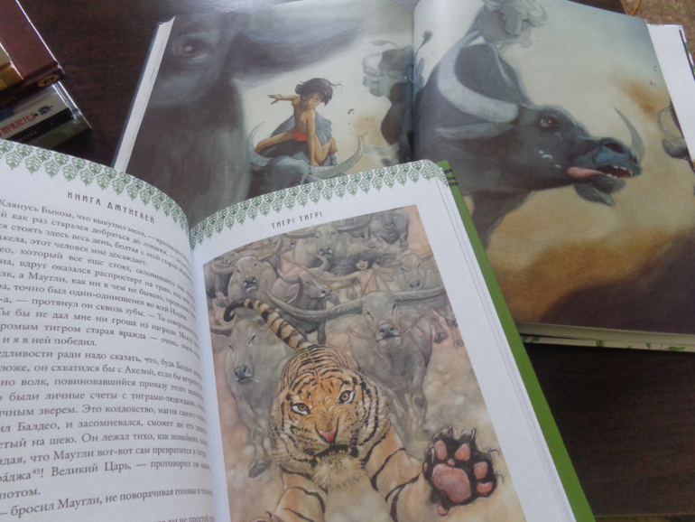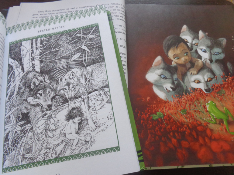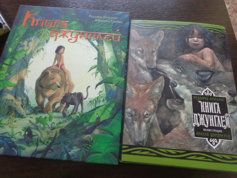 Маугли. Не было у меня ни одного, поэтому решила не мелочиться и заказала сразу 2! Потрясающие сочные, яркие иллюстрации Квентина Гребана не могут не понравиться детям (а также их родителям), но полный текст мне тоже очень хотелось. На помощь пришел Абрикобукс - книга дорогая, запоминающаяся, взрослая.