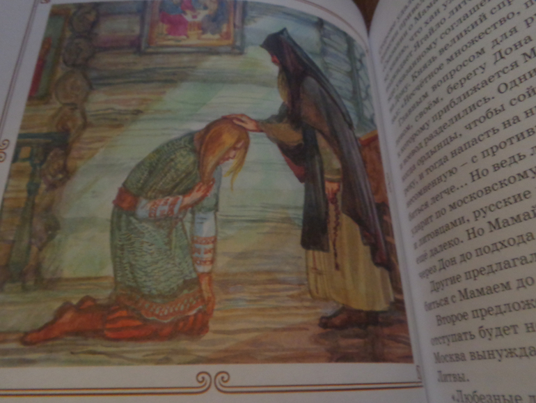Ветры Куликова поля. Видела книгу в отзыве, а не так давно большое букинистическое издание показывала Юля и я прям загорелась идеей покупки! Но вот старого советское не достать...Стала я внимательно изучать содержание книги от Махаона. В Лабиринте ее ругают за усеченный вариант, мол, книга на один раз, ребенок возвращаться к ней не будет, текст-то сокращен! По мере возможностей сравнила. В книге полный текст рассказов Анатолия Митяева, но не включены последние три большие рассказа на 200 страниц, отсюда и такой скромный объем... Но сам текст-то тот самый! Значит, дети и взрослые могут перечитывать цикл рассказов только из-за последних трех? А мне вот как раз интересно самое начало!) Если выпустят книгу с невключенными рассказами или переиздадут полный вариант - с радостью куплю! Но и этот вариант мне очень понравился!