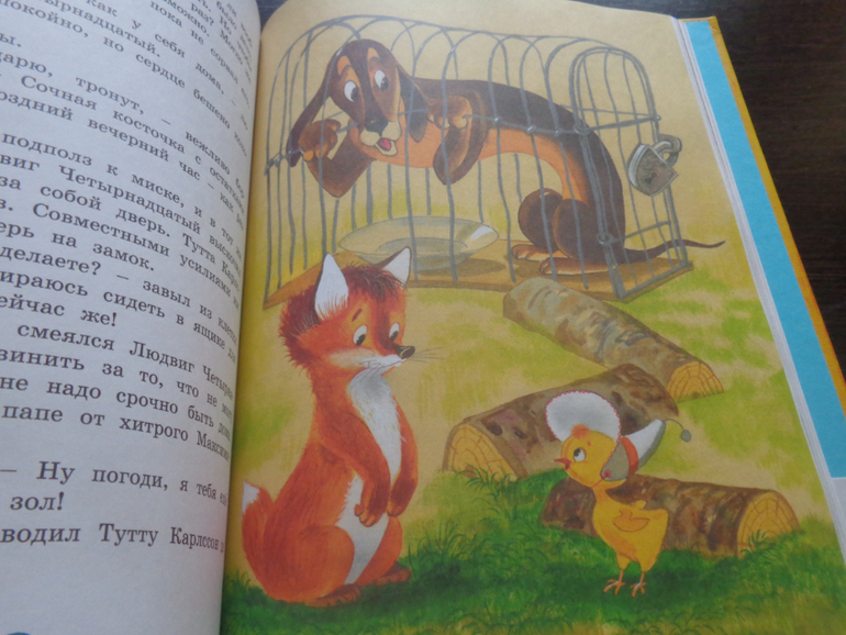 Тутта Карлсон. В детстве книги не было, поэтому ностальгию по иллюстрациям не испытываю - выбрала книгу с яркими красками! У меня офсет, но догадываюсь, что на меловке было бы еще ярче и четче! начали читать - нам нравится)