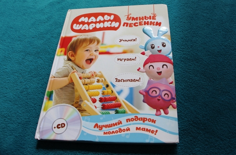 Книга скорее для мамы, но сыночек любит малышариков, поэтому листали мы ее часто в этом месяце. В книге напечатаны тексты песенок, которые мы слушаем с диска (идет вместе с книгой) и это еще один повод полистать книгу вместе. Для сына как волшебство то, что мама может читать ему как стихи те слова, которые он слушает в песне. Не знаю как это понятнее написать, но маленький ум очень будоражит этот факт.