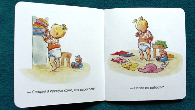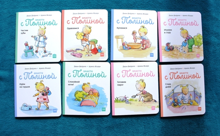 Очень удобно сразу 8 книжек. Темы как раз близкие для 3х лет, особенно в преддверии скорого садика. Ребенку понятны ситуации в книжках, он их хочет повторять. С одеванием вообще нам в тему - когда ребенок весенний, то и получается, что одеваться мы будем учиться только сейчас после трех лет, когда пойдет летняя легкая одежда. Я всю зиму переживала, что старший к трем уже полностью сам одевался и только сейчас поняла, что он так же учился летом перед садом, просто у него ДР в августе. А вместе с Полиной, обезьянка маленькая, тоже захотел пробовать. )))
