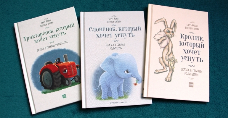 Сонные сказки сынок полюбил и принял теперь как единственное возможное чтение перед сном. Я только рада, потому что он реально засыпает с них. Это магия: я открываю Тракторенка, он перебивает меня и тычет в луну на картинках, курочку и сарай - мы выясняем, кто улыбается и где живет, потом несколько страниц текста и ребенок спит. Кролика мы почитаем позже, пока вселенская любовь к Тракторенку, а Слоненка уже подарили и под него засыпает наша сестренка.