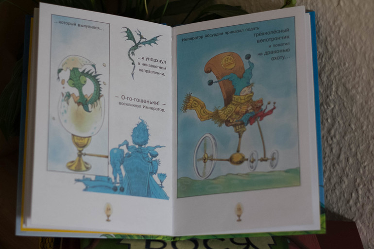 1) Император Абсурдии, перечитывала его раза 3 наверное. На мой вопрос чем нравится книга, я получила ответ "Нравится, потому что там все смешные и он смешной. А еще там есть трехколесный велотрончик". Через 2 недели, еще раз перечитав, добавила, что "там все странное и непонятное")) Это моя первая попытка узнать мнение о книгах)) ну хоть что-то, а то раньше просто понравилось и все....хотя читаем много, обсуждаем тоже....