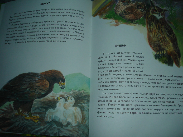 А тут, читая про филина, сын вспомнил сову, которая тоже ловит мышей, а потом и орла-гарпию, который ловит обезьян. Просто в другой книге сова и гарпия-обезьяновед на соседних страницах. Полезно читать подобные книги, что ни говори.