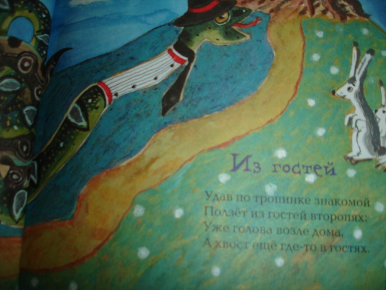 Альбом Бялковской мы читали с Саней по очереди. Там есть просто картинки, есть картинки с подписями, есть картинки со стихами. Двоякое у меня впечатление. Бялковская, конечно, прекрасна, а вот обработка изображений местами небрежная - где-то просто неудачно разместили "облачка" (те, что в комиксах используются), последнюю картинку безобразно растянули так, что пиксели стали видны.