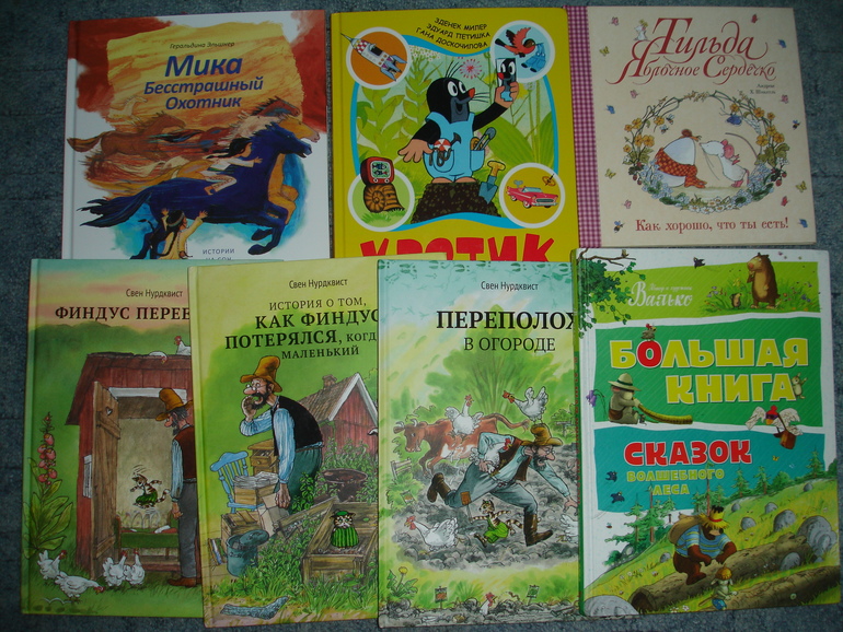 Книги-картинки. Со словами: "мы давно не читали про Финдуса" Санька притащил кое-что.