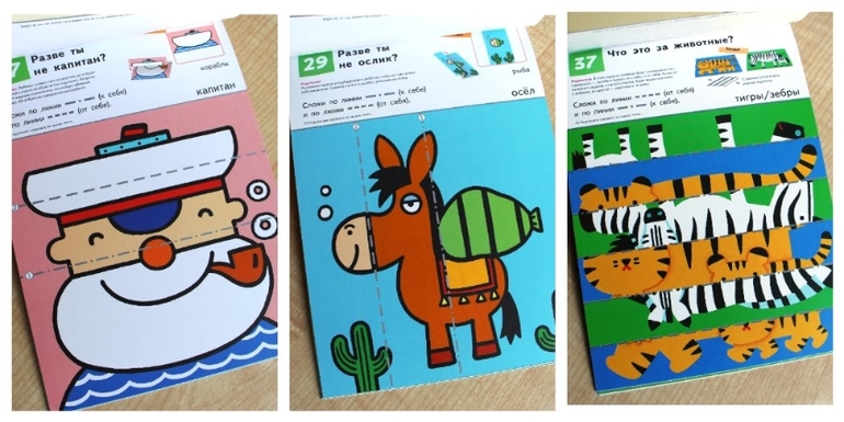 4. Тетрадь помечена от 2х лет - поверьте, такие интересные и простые превращения бумаги нравятся и старшим детям. Мне большого труда стоило оторвать старшего от этих картинок - учимся концентрироваться на своих заданиях. )))