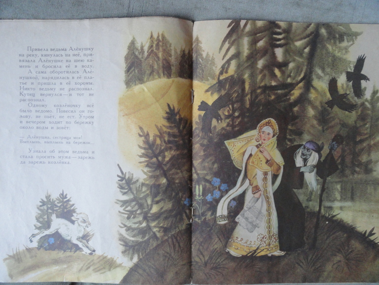 У меня тоненькая про Алёнушку есть, ещё из моего детства, но очень плохо сохранилась, так как пережила переезд и изначально бумага в книге очень плохая была, какая-то рыхлая.