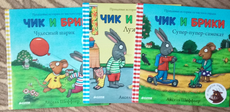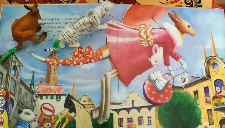 Самое удивительное, что в один из вечером мой ребенок собрался в .. книгу.. да, да, пытался влесть туда головой, потом сказал давай попросим папу, он открутит страничку и мы пойдем в книгу) я оторву все у кролика,ноги, руки, поставлю себе, а свои оторву и отдам кролику, а ты, мам,оторвешь все у Бони, отдашь свои и ты будешь Боней) вообщем, несколько дней он очень туда рвался) ну,и конечно, усиленно натирал выпуклые шкурки у зверей.