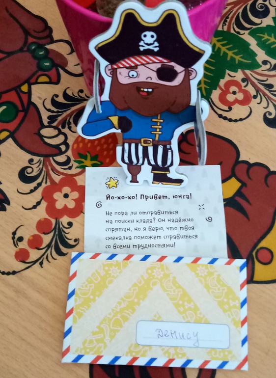А второй квест был просто беготня по квартире от стиральной машине к подоконнику и так далее в поисках подсказок, чтоб в конце найти сокровище пиратов)