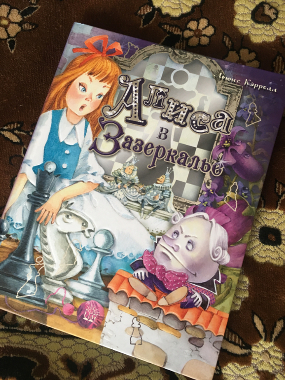 Первым делом книга, которой нет в стопке - это Алиса в Зазеркалье.