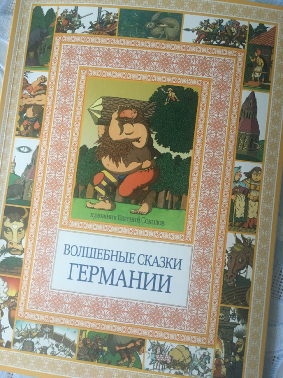 Для сравнения показываю сказки Германии. Другой художник, я такие иллюстрации вообще не люблю и не понимаю. По содержанию - Шиповничек, это та же Спящая Красавица, Сова - в конце сгорела в сарае, а Железный Ганс мне показалась не очень логичной :). Короче, я ее в библиотеку оттащила и дочери не читала.
