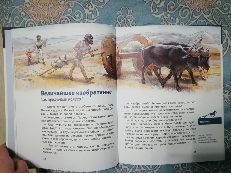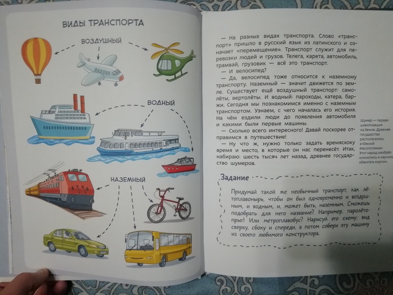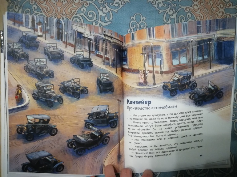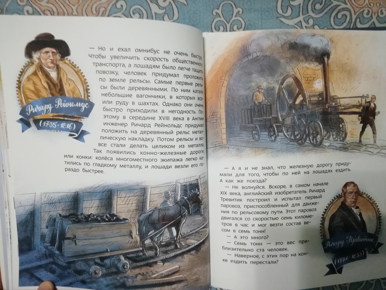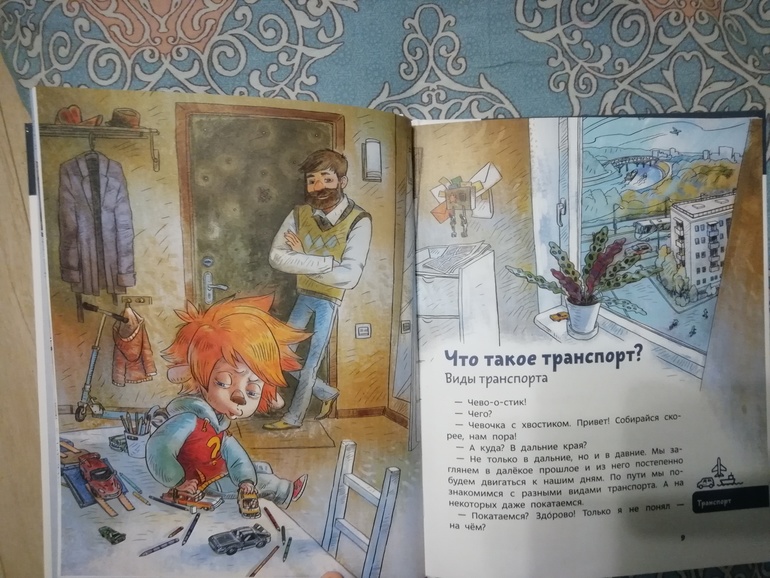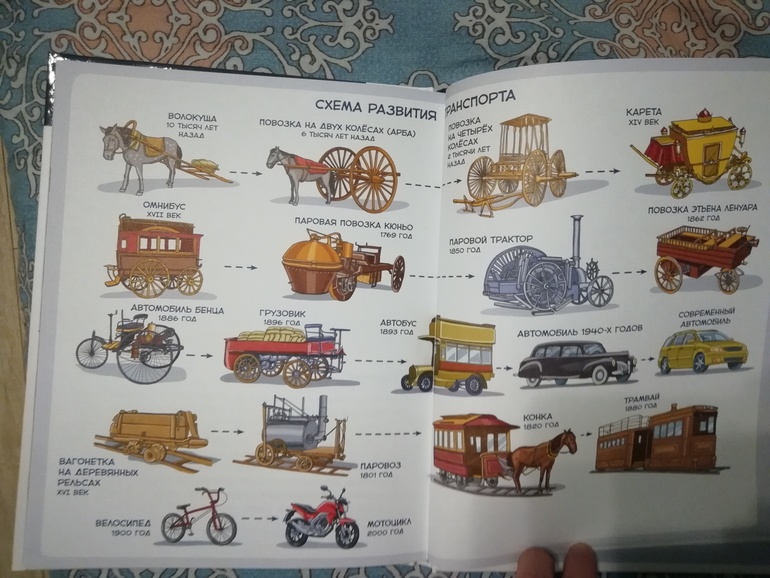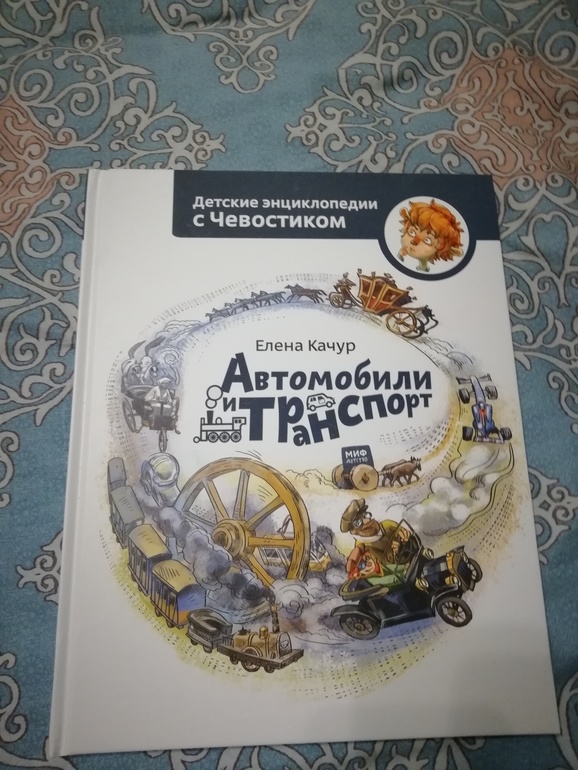 Мы фанаты Чевостика, но это наша первая бумажная книга. Как я и писала выше, мы слушаем аудиоэнциклопедии, играем в игры за компьютером на сайте Чевостика и очень просим мягкую игрушку с любимым героем. В таком формате энциклопедия мне нравится больше, можно посмотреть иллюстрации, портреты ученых и изобретателей, схемы сложных устройств, информация воспринимается проще и быстрее. Тема транспорта больше интересна мальчишкам, поэтому сын естественно первый ей заинтересовался и "утащил" читать самостоятельно. Наслаждение самостоятельным чтением длилось недолго, так как Чевостик любимый герой Ксюши. Пришлось Максиму читать книгу вслух сестре. Прочитал он ее за один день (для него это рекорд, обычно он не читает книги, где много текста так быстро, а растягивает на несколько дней. Возможно, тут еще сыграло, что сестра требовала чтения). весь следующий день дети ходили за мной с вопросами "Мам,а ты знала, что у первых машин в фарах стояли свечи?", "Мама, а ты знаешь почему все первые машины Генри Форда были черного цвета?" "Мама, а ты знаешь кто изобрел двигатель?" и потом сами же на них отвечали, подхихикивая над моим незнанием. В общем, я не выдержала шквала вопросов и дабы не отставать от детей, сама села и прочитала эту книгу. А Вы знаете, очень даже познавательно и интересно! Много я не знала. Сама подача информации очень интересная. Герои-просто обворожительные! Буду потихонечку скупать серию, пока есть в продаже.