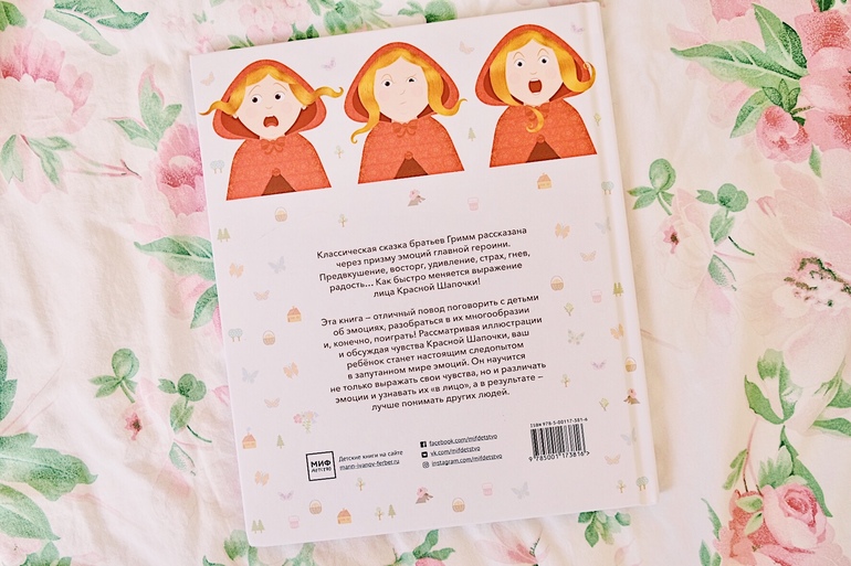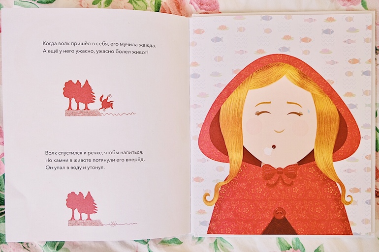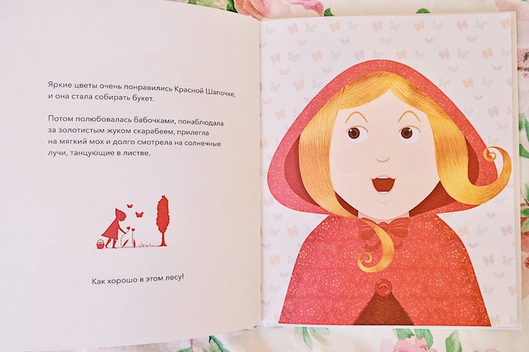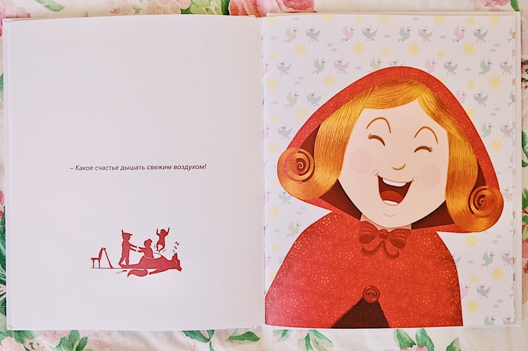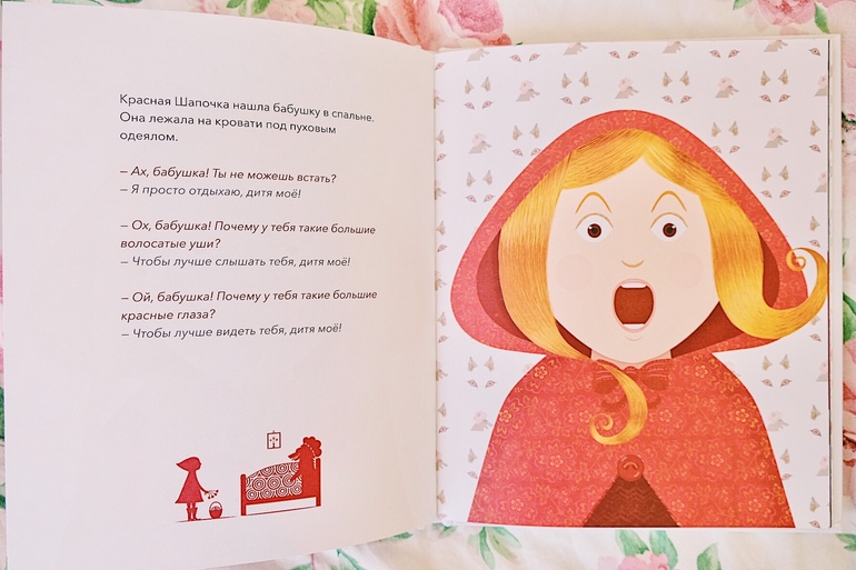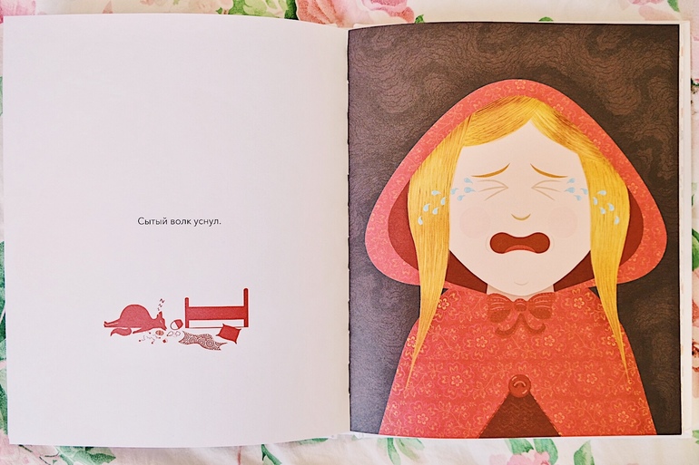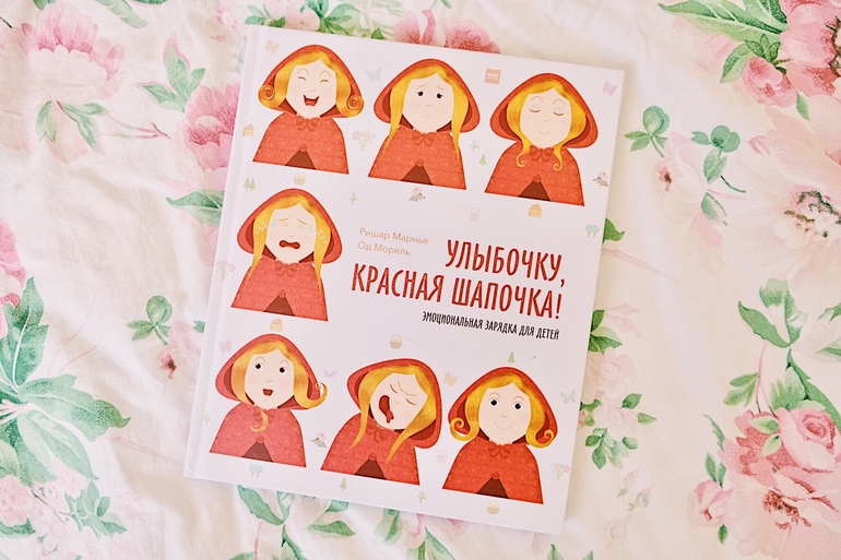 Книжка называется «Улыбочку, Красная Шапочка!». Она вышла недавно, но уже успела сильно влюбить в себя. Всем известная сказка про Красную Шапочку и серого волка помогает нам встать на место главной героини и попытаться понять, какие эмоции могла испытывать девочка в тот или иной момент.
