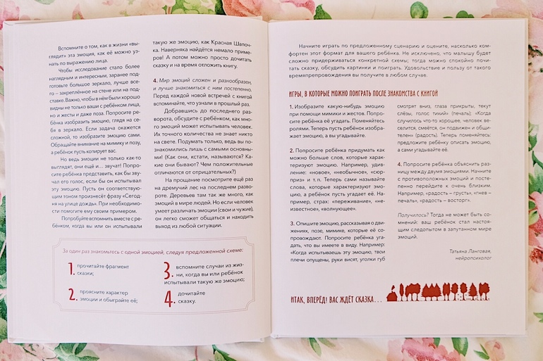 На первых страницах содержится небольшая подсказка для родителей, помогающая им правильно работать с книгой. Там можно найти полезные советы по основам развития эмоционального интеллекта ребёнка.