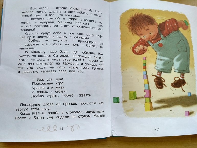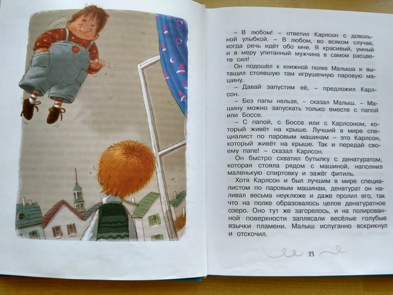 Рисунки Арсена Джаникяна нам понравились , хотя их и не очень много, через 2-4 разворота. Но дочь может и без рисунков вообще читать .. Сами герои симпатичные, Карлсон хорош!