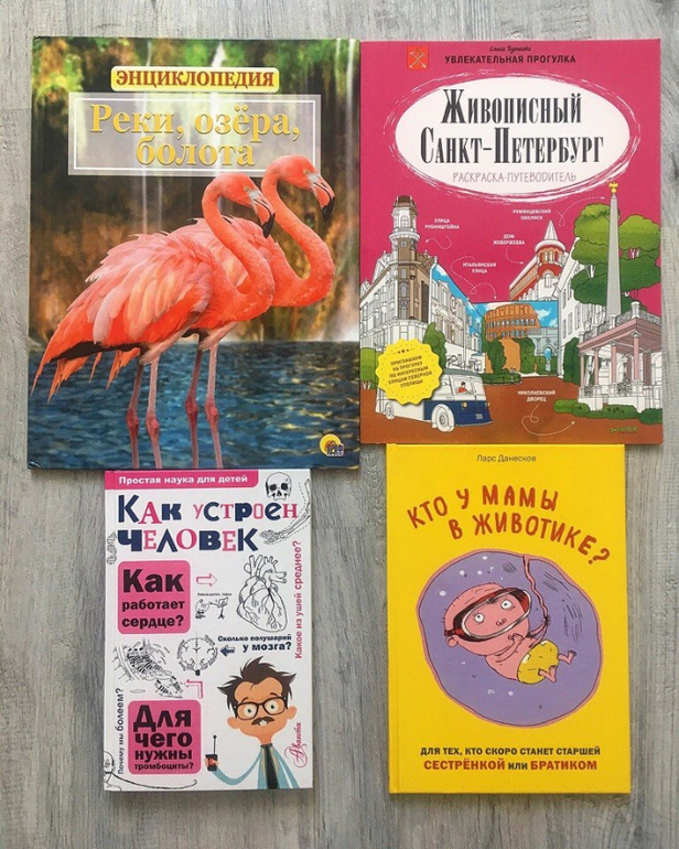 2. Энциклопедии по тематикам. Их выбрала дочь сама. О том, что ей интересно в данный момент. Еще не читали.