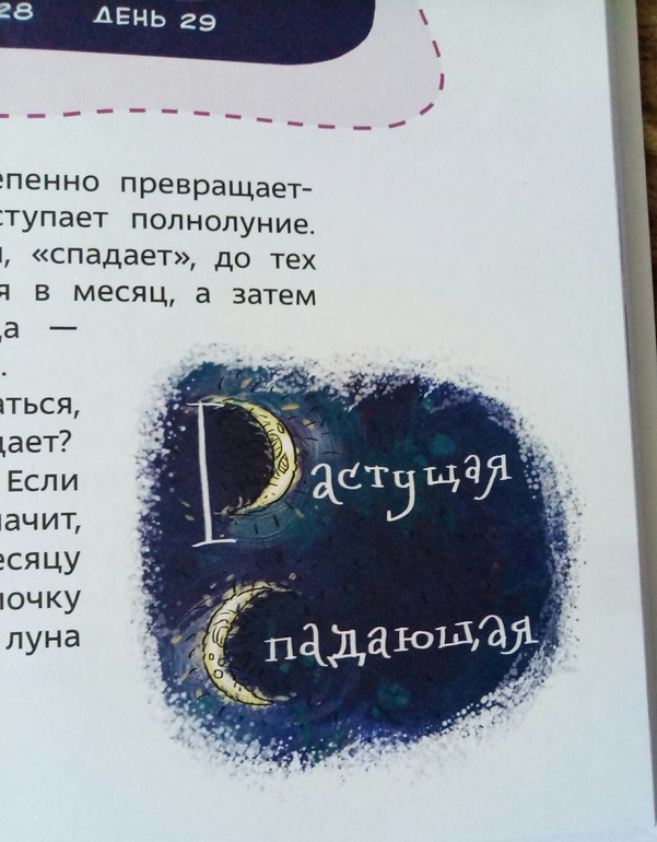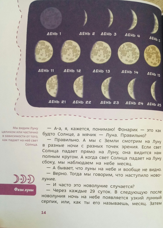Очередная замечательная энциклопедия издательства МиФ Увлекательная астрономия про все то, что мы видим на небе, и про то, что мы не видим, но точно знаем, что оно есть) Но это мы взрослые знаем, и у нас даже не возникает вопрос, куда же девается луна, когда на небе виден месяц